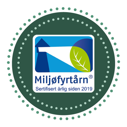 Vår virksomhet er sertifisert fra Miljøfyrtårn, noe som innebærer at vi har dokumentert at vi jobber systematisk og målrettet med å redusere våre miljøpåvirkninger.